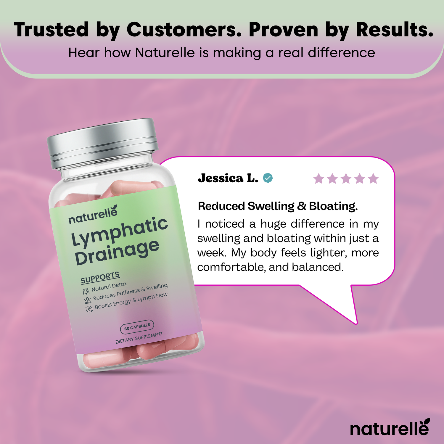 Naturelle works 24/7 to address the REAL problem—whether your lymphatic system slowed from stress, thyroid issues, sedentary lifestyle, hormonal changes, poor sleep, or simply time.