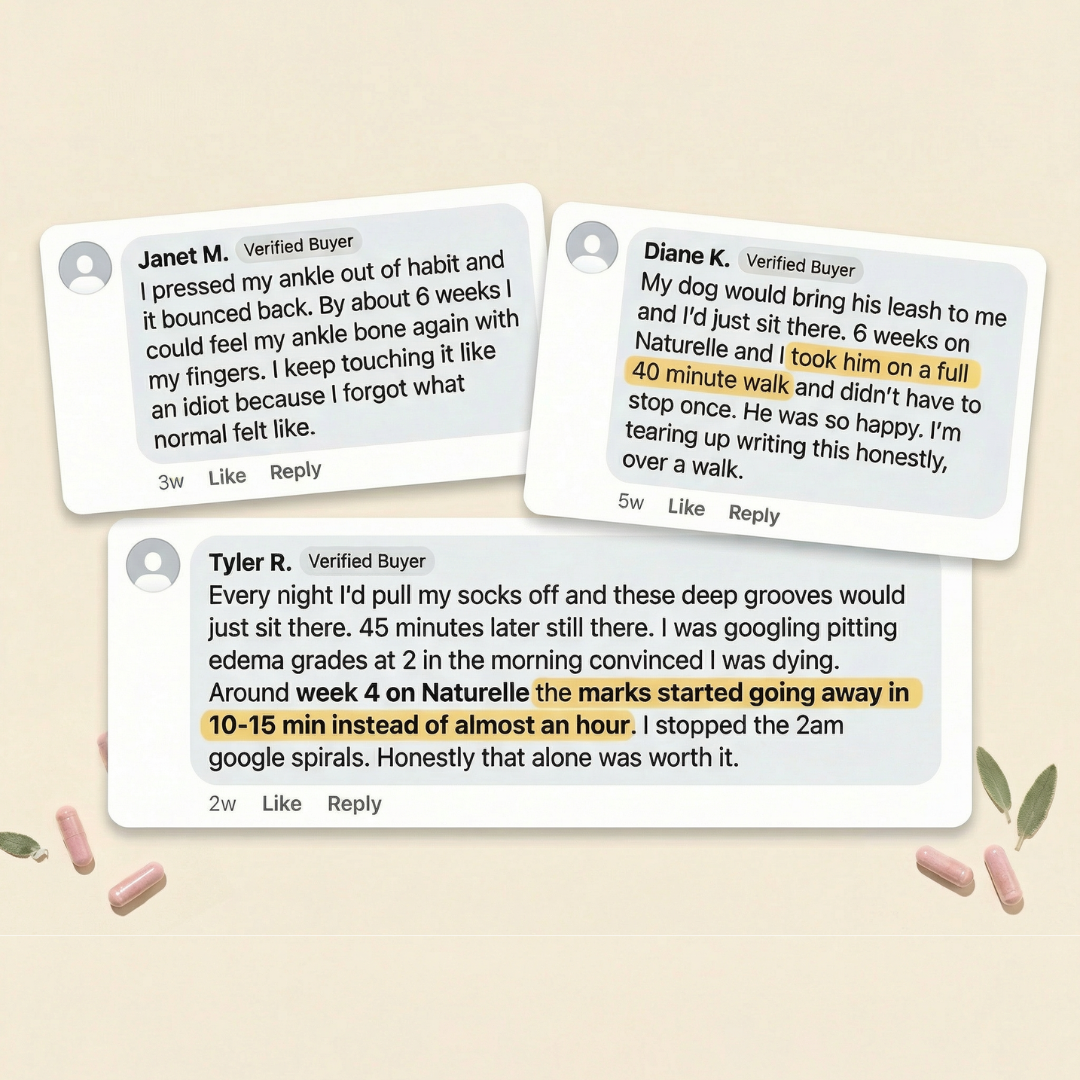Take Naturelle for a full 60 days. If your legs don't feel lighter. If the swelling doesn't go down. If you don't notice a real difference —