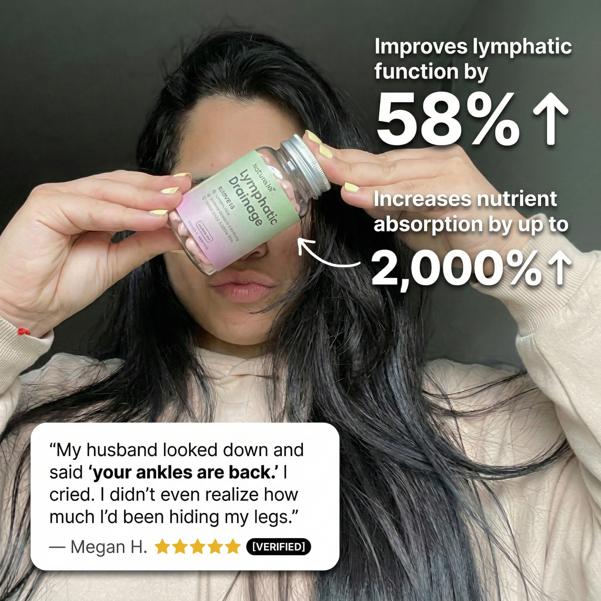 A research-backed formula that reactivates your body's broken drainage system from the inside — targeting all 3 root causes of chronic swelling.