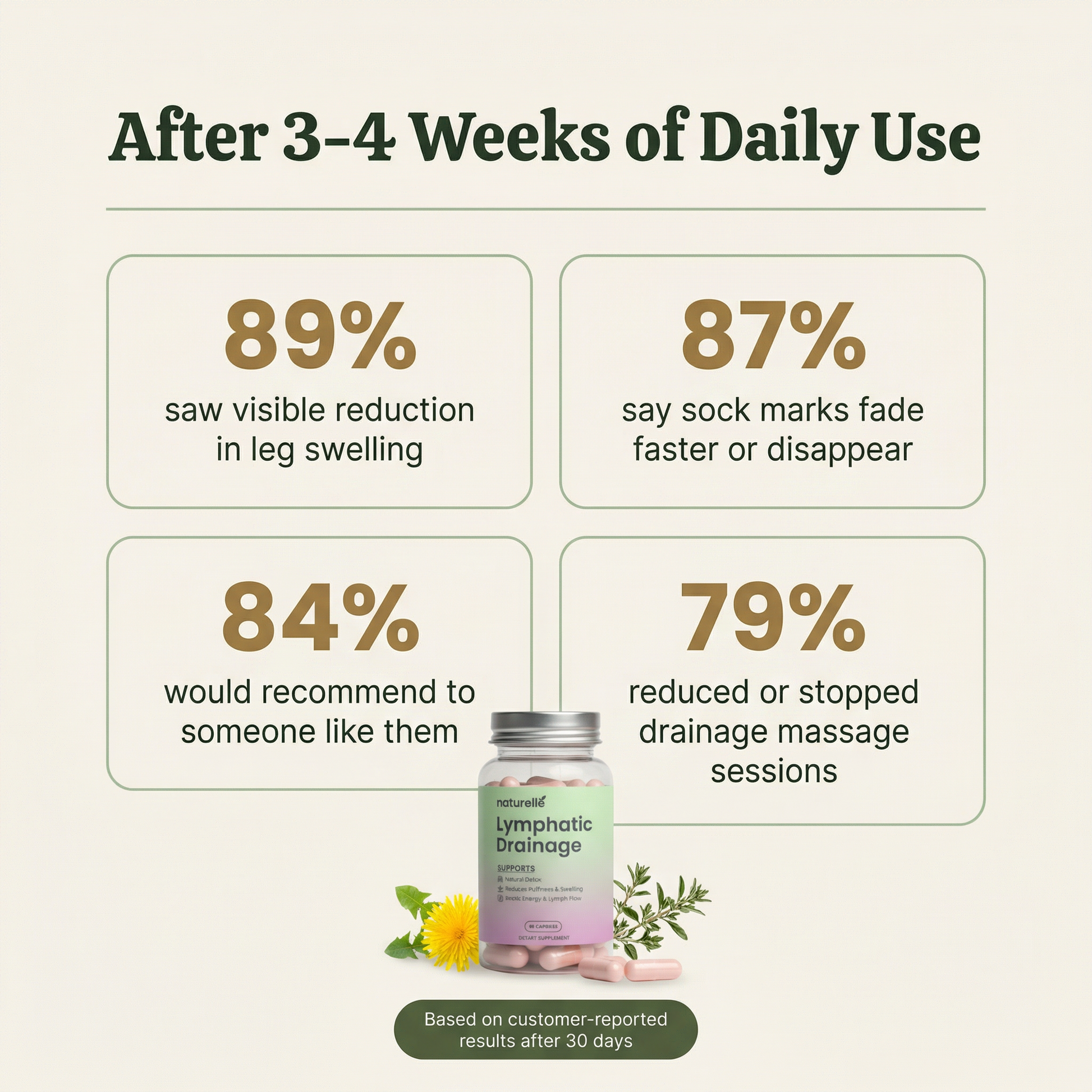 Most women notice early signs in 1-2 weeks — lighter legs, less morning puffiness.